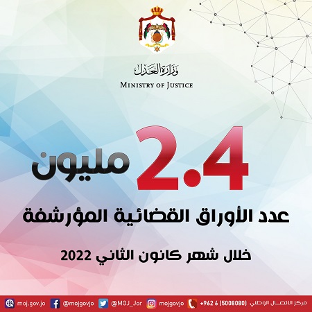 وبينت الوزارة في منشورات عبر مواقع التواصل ان عدد الأوراق القضائية المؤرشفة خلال ذات الشهر بلغ 2.4مليون ورقة.