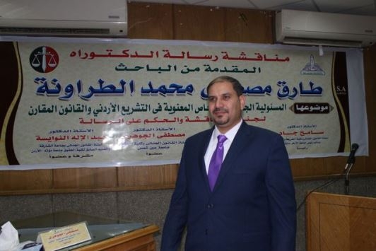 للأشخاص المعنوية في التشريع الأردني والقانون المقارن) وحصولة على درجة الدكتوراة