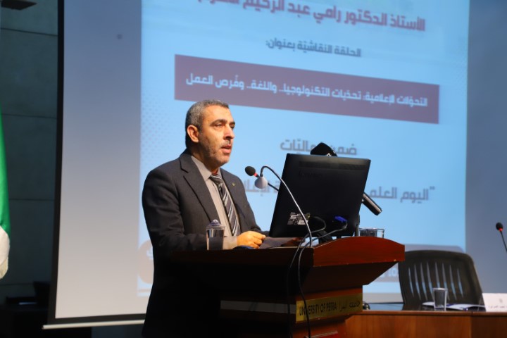 خبرني - افتتح نائب رئيس جامعة البترا الأستاذ الدكتور مياس الريماوي فعاليات اليوم العلمي لكلية الإعلام، تحت عنوان: "التحولات الإعلامية: تحديات التكنولوجيا، واللغة، وفرص العمل". ناقش اليوم العلمي أبرز القضايا الحديثة في مجال الإعلام الرقمي، بمشاركة نخبة من الأكاديميين، والخريجين، وطلبة الكلية.