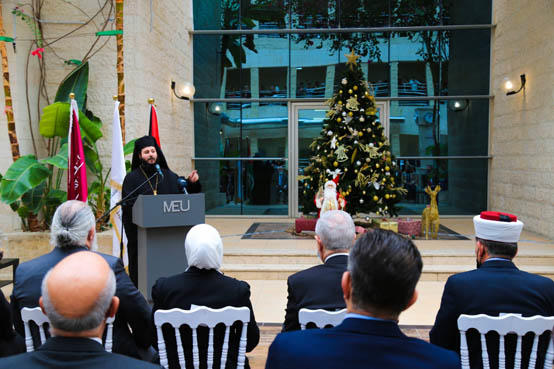 بدوره أكد سيادة الأرشمندريت أن ما تفعله جامعة الشرق الأوسط يبعث على الفخر، وأن كادرها الأكاديمي والإداري، والطلبة يجسدون المعنى الحقيقي لأيقونة الوطن المتماسك، مشيرًا إلى ما يتمتع به طلبة الجامعة من فكر سليم يرسم ملامح مستقبلٍ زاهر يؤمن بسماحة بناة هذا الوطن ونبل أخلاقهم.