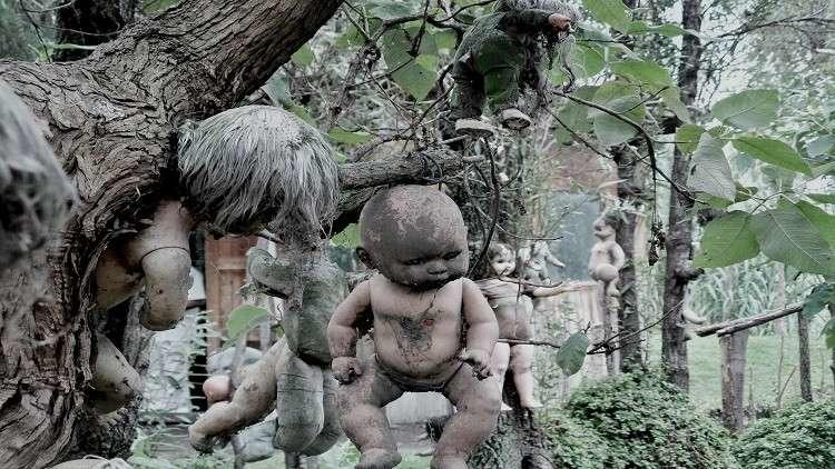 وهناك المئات من الدمى البلاستيكية المشوهة والمعلقة على فروع الأشجار، وهي مشنوقة من رقابها، ومصلوبة، ومعلقة رأسا على عقب، وكثير منها قطعت أطرافها أو بترت رؤوسها.