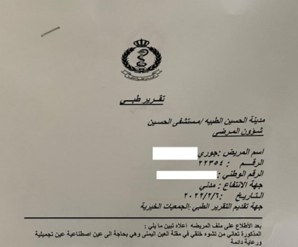 عائلة جوري تمتلك كافة التقارير الطبية وموقع شراء العين الزجاجية لكل من يطلب المعلومات.
