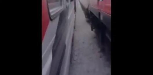 وكشف الفيديو لحظة انطلاق حصان بسرعة كبيرة على قضبان السكة الحديد خوفاً من أحد القطارات. ليفاجأ بقطار آخر قادم في الاتجاه المعاكس، وسط صراخ من الركاب.