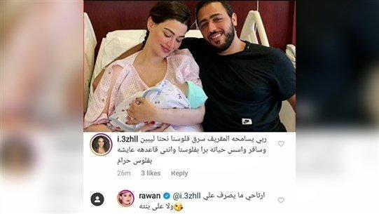 والصورة المرفقة المتداولة أظهرت تعليقاً لإحدى المتابعات جاءت فيه اتهامات لعائلة زوج روان الذي يدعى يوسف مقريف بسرقة أموال الشعب وتأسيس حياة جديدة له برفقة روان. وأضافت الفتاة في تعليقها: "عايشة بفلوس حرام"!!