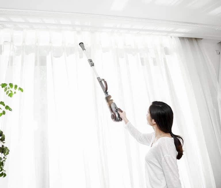 يمكن أيضًا تطبيق العملية على كامل مساحة الستائر لضمان زوال جميع البقع.