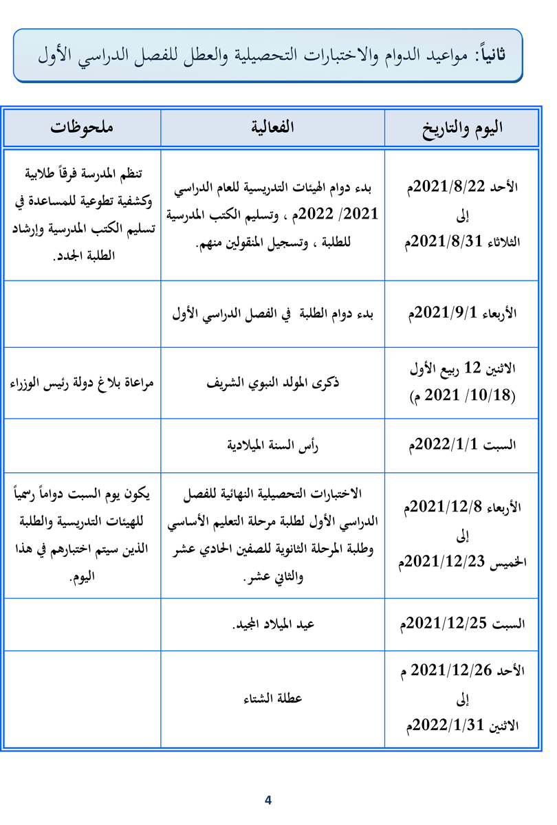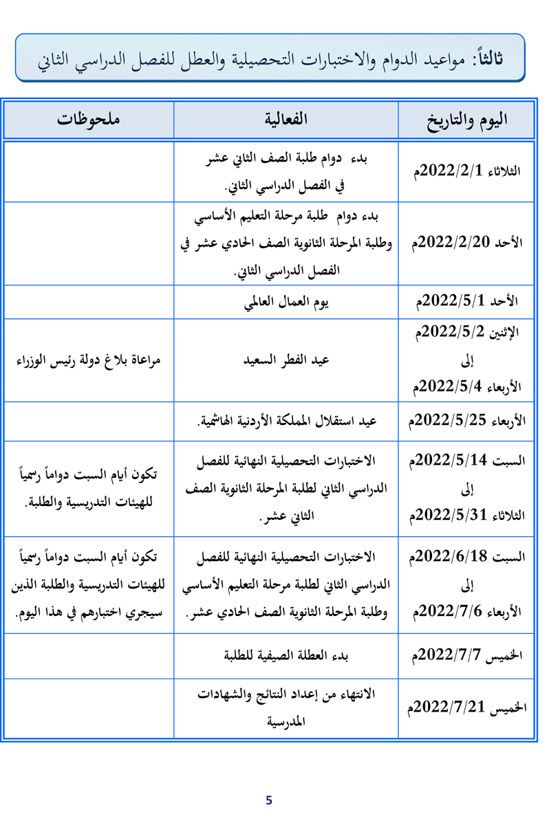 وبحسب التقويم الجديد ينتهي الفصل الدراسي الثاني في السابع من تموز المقبل.