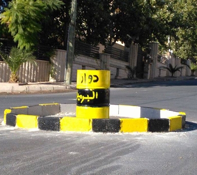 بجهود شخصية ، ودهنوه باللونين الاصفر والاسود ، ووضعوا في منتصفه برميلا كتب عليه " دوار البرميل " .
