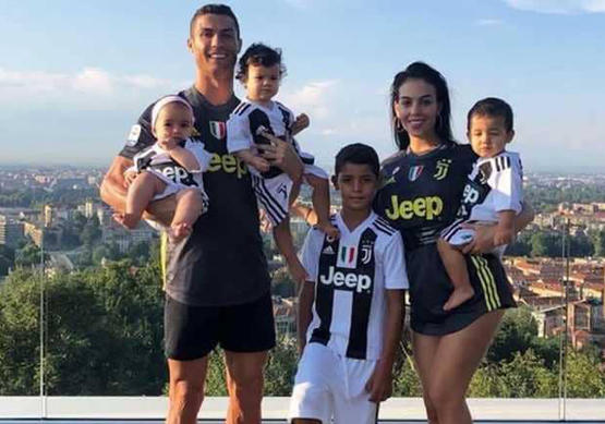 وظهر رونالدو برفقة صديقته جورجينا رودريغيز، وأولاده كريستيانو جونيور (8 أعوام)، والتوأم إيفا ماريا وماتيو (14 شهرا)، وآلانا مارتينا، (8 أشهر)، وجميعهم بقمصان يوفنتوس الشهيرة.
