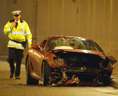 وقالت شرطة مانشستر الكبرى في بيان بعد تحطم سيارة اللاعب الدولي البرتغالي من جراء الحادث داخل نفق قرب مطار مانشستر "لم يصب اي شخص جراء التصادم".