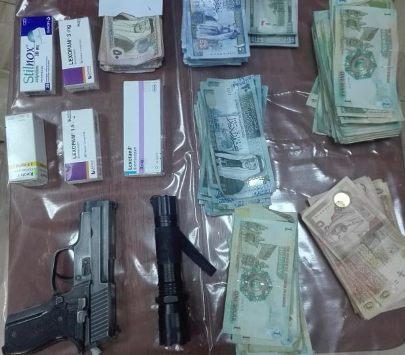 ولم يقتصر هدف المسلح على المال، إذ سلب أدوية أيضا، ظهرت في صورة نشرتها مديرية الأمن العام.