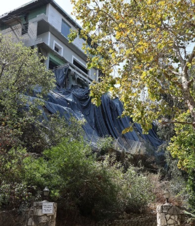 ويقوم طاقم الشركة بتركيب شباك ثقيلة حول منحدر التل شديد الانحدار، لمنع الركام أو البناء من الانزلاق نحو منازل الجيران الذين رفعوا دعوى قضائية على حديد والد عارضتي الأزياء المشهورتين بيلا وجيجي حديد.