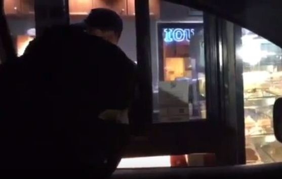 سيارتها الأحد بنفسها للتنزه والتوقف لطلب القهوة من نافذة سيارتها، مشيرة