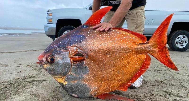 وتم اكتشاف السمكة التي يبلغ وزنها 45 كيلوغراما، المعروفة أيضا باسم "سمكة القمر"، على شاطئ مدينة سيسايد في الجانب الشمالي الغربي من الولاية.