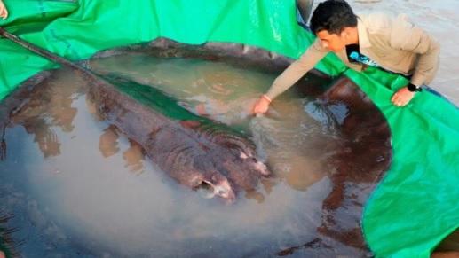 خبرني - اصطاد القرويون الكمبوديون على نهر ميكونغ ما وصفه الباحثون بأنه أكبر سمكة مياه عذبة تم تسجيلها في العالم على الإطلاق، وهي سمكة الراي اللاسع المهددة بالانقراض.
