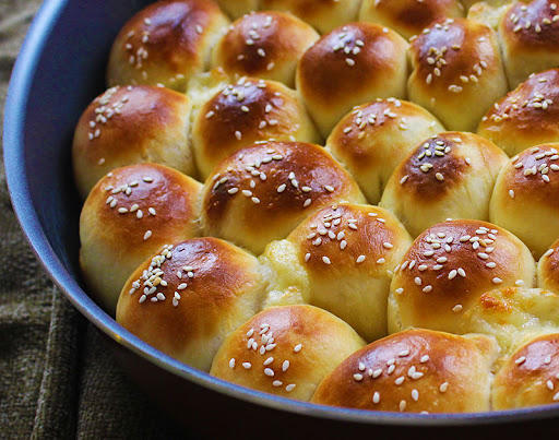 يُوضع القليل من الزيت النباتي في صينية الفرن وتُدهن كافة زواياها وتُصف بها كرات الخلية بشكل متقارب أو شبه ملتصق ببعضه، ومن ثم تُترك لتختمر لمدة لا تقل عن نصف ساعة.