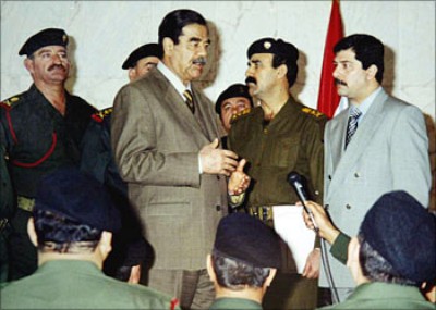 وكان من الصعب تحديد جنسية هؤلاء الأشخاص بصورة مؤكدة لتعمد الكثيرين منهم التخلص من وثائق المواطنة الخاصة بهم. وأكد صدام أنه في أعقاب اتخاذه قرارا بإعادة التأكيد على سيطرة الحكومة على البلاد، أعطت القيادة العراقية المنطقة الجنوبية من البلاد أولوية كبرى. وكانت تلك هي المنطقة التي واجهت فيها القوات العراقية وحاربت عناصر تنتمي بصورة أساسية لإيران. وبعد استعادة النظام إلى جنوب العراق، ركزت القوات الحكومية على المنطقة الشمالية حيث جابهت مقاومة هزيلة، وأحيانا لم تجد أية مقاومة. واستمرت أعمال القتال بشمال وجنوب العراق طيلة أسبوعين تقريبا. وقال صدام: «نصرنا الله». وأضاف أنه منذ ذلك الحين، استمرت إيران في تسريب مجموعات يتراوح عدد أفرادها بين عشرة وخمسة عشر شخصا إلى داخل الأراضي العراقية لتنفيذ عمليات ضد الحكومة. إلا أن جهود هؤلاء الأفراد أحبطت في معظمها على يد السكان المحليين. في نهاية الأمر، في أعقاب إبرام اتفاق بين العراق وإيران، توقفت هذه العمليات العدائية. وصف صدام انتفاضة عام 1991 بأنها نشاطات تمرد قام بها «خارجون على القانون ولصوص». ورفض صدام اعتبار المتمردين ثوريين. وعندما سئل عن ماهية العوامل التي سمحت بوقوع مثل هذه الاضطرابات، أجاب صدام بأنها الدعم الإيراني وضعف الحكومة العراقية بعد الحرب والمساعدة المحتملة من قبل قوات التحالف. ونوه صدام بأن جميع المؤسسات الحكومية، بما في ذلك الشرطة والمؤسسة العسكرية، أصابها الوهن جراء الحرب. لكنها تمكنت في نهاية الأمر من التغلب على المتمردين. وطبقا لما صرح به صدام، فإن «سيف» المؤسسة العسكرية العراقية «ازداد طولا». إلا أنه اعترف بأن الضعف الذي ألم بالمؤسسة العسكرية العراقية يشكل العامل الرئيس الذي أسهم في حدوث تلك الفوضى من الأساس. وأعرب صدام عن اعتقاده بأن الهدف وراء نشاطات التمرد كان السيطرة على العراق. ومن وجهة نظره، فإن هذا التكتيك جرى استخدامه عام 1991 بعد عجز إيران عن إنجاز هدفها خلال حربها الأخيرة ضد العراق. رغبت إيران في السيطرة على كل، أو على الأقل جزء من العراق، خاصة الجزء الجنوبي. وأبدى صدام قناعته أيضا بأن طهران رغبت في توسيع دائرة نفوذها إلى شرق السعودية ومنطقة الخليج بأكملها. من جانبه، خول مجلس قيادة الثورة للمحافظين سلطة السيطرة على المؤسسة العسكرية خلال فترة الانتفاضات لضمان حماية أبناء محافظاتهم وإعادة إقرار الأمن «والحياة الطبيعية». وبات أمن الشعب والبلاد مهددا جراء انتشار أعمال القتل والسرقة وحرق المباني والتدمير العام، لكن تمت في النهاية السيطرة على كل ذلك. ونفى صدام علمه بالأساليب التي لجأ إليها المحافظون والقوات العسكرية لإعادة فرض السيطرة. وقال «لقد تم تخويلهم السلطة اللازمة، وقاموا باستغلالها». في ذلك الوقت، لم يسأل صدام عن معلومات مفصلة حول العملية، لكنه طلب وتلقى بالفعل تقارير عن الوضع العام فيما يخص مدى التقدم الذي تحرزه العمليات. فيما يتعلق بالقيود التي فرضتها القيادة على القوات العسكرية خلال تلك الفترة، تساءل صدام «ماذا تعني بقيود؟» وأنكر صدام اندراج هذا الموقف في نطاق معاهدة جنيف، مشددا على أنها تنطبق على الحروب فحسب.