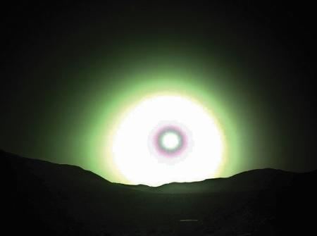 وتظهر صورة برسفرنس غروب الشمس في أفق المريخ متوهجة باللون الأخضر المزرق البارد والغريب. وهي صورة تلقي المزيد من الضوء على الفيزياء وراء غروب الشمس الغريب، وفيزياء تشتت الضوء على الكوكب الأحمر، وكيف يتناقض مع ظاهرة مماثلة على الأرض.