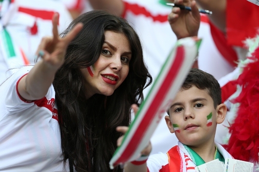 عدد كبير من المشجعات الإيرانيات وهن يتجاهلن التحذير بحركات وملابس