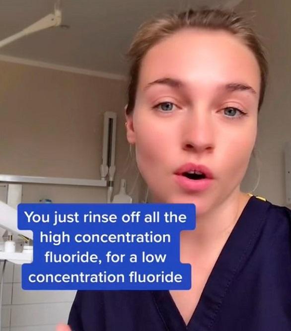 وشاركت آنا بيترسون مقطع فيديو على تيك توك تحث فيه الناس على عدم القيام بذلك، وأوضحت أن معجون الأسنان يحتوي على 1450 جزءًا في المليون من الفلورايد، وغسول الفم يحتوي على 220 جزءًا فقط في المليون من الفلورايد، وهذا تركيز أقل بكثير ولا يكفي لحماية أسنانك من السكريات التي ستأكلها وتشربها.