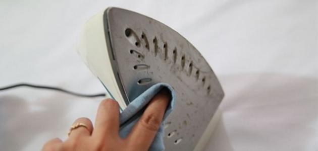 يمكن فرك المكان المتسخ بملح الطعام ولكن برفق حتى لا تخدش أو تتسبب في حدوث أضرار على جسم المكواة ثم نمسحها مرة أخرى.
