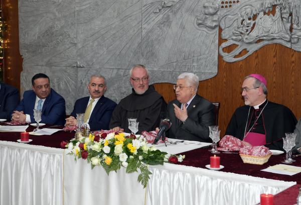 جاء ذلك خلال مشاركة الرئيس عباس، مساء الثلاثاء، في عشاء عيد الميلاد المجيد في دير الفرنسيسكان في مدينة بيت لحم، للكنائس المسيحية، التي تسير حسب التقويم الغربي.