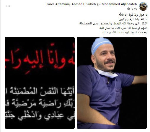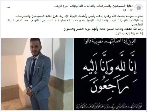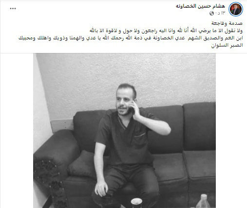 ونعى زملاء وأصدقاء وافراد اسرة الخصاونة الممرض الشاب ، معبرين عن صدمتهم بوفاته.