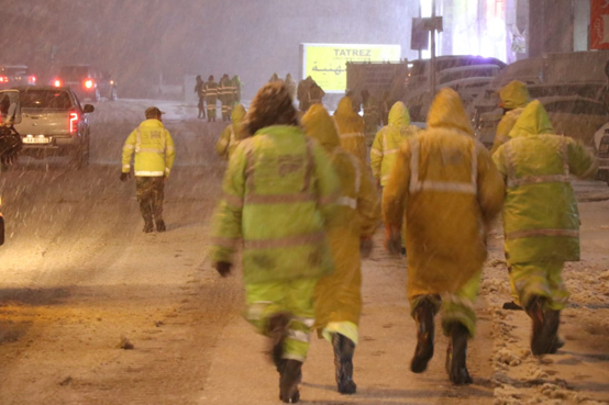 وبقي عمال الوطن على أهبة الاستعداد ، ويعملون بلا كلل رغم الظروف الجوية ، ويساعدون المحتاجين ممن تقطعت بهم الطرق او علقت مركباتهم بسبب الثلوج.
