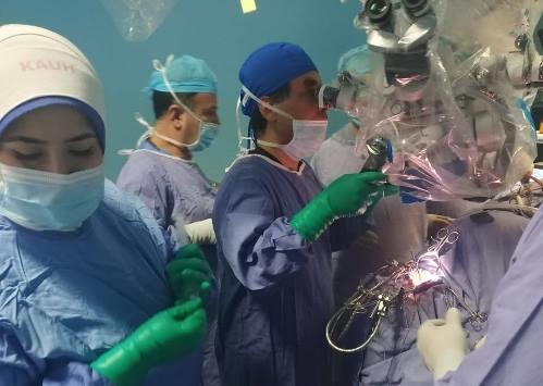 خبرني - أجري في مستشفى الملك المؤسس عبدالله الجامعي عملية جراحية نوعية لمريضة أربعينية تعاني من نزيف دماغي حاد ناتج عن وجود تشوه شرياني في الشريان القاعدي الأساسي من جذع الدماغ .