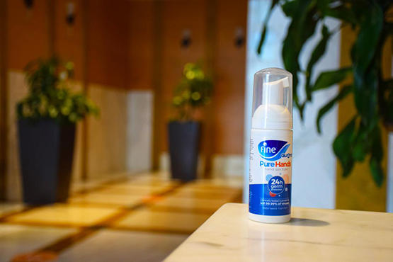 وتشمل المنتجات الجديدة: مطهر اليدين (فاين جارد بيور هاندز PureHands)، الذي يوفر حماية على مدار 24 ساعة كاملة بعد استخدامه في كل مرة، ومطهر الأسطح (فاين جارد بيور سيرفيسز PureSurfaces) الذي تدوم فعاليته حتى 21 يوماً، ومطهر الأقمشة والمنسوجات (فاين جارد فابريك بووستر Fabric Booster)، الذي يقدم حماية فعالة ضد الجراثيم والفيروسات لمدة تصل إلى 48 ساعة، فضلاً عن مسحوق الغسيل المطهر (ستيري ووش SteriWash) الذي يعقم الملابس بفعالية تدوم لمدة 7 أيام.