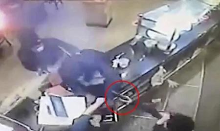 خبرني - فاجأ فتى أمريكي لصا حاول سرقة محل البيتزا المملوكة لأسرته في مدينة فيلادلفيا بولاية بنسلفانيا الأمريكية بأن أطلق الرصاص الحي عليه.