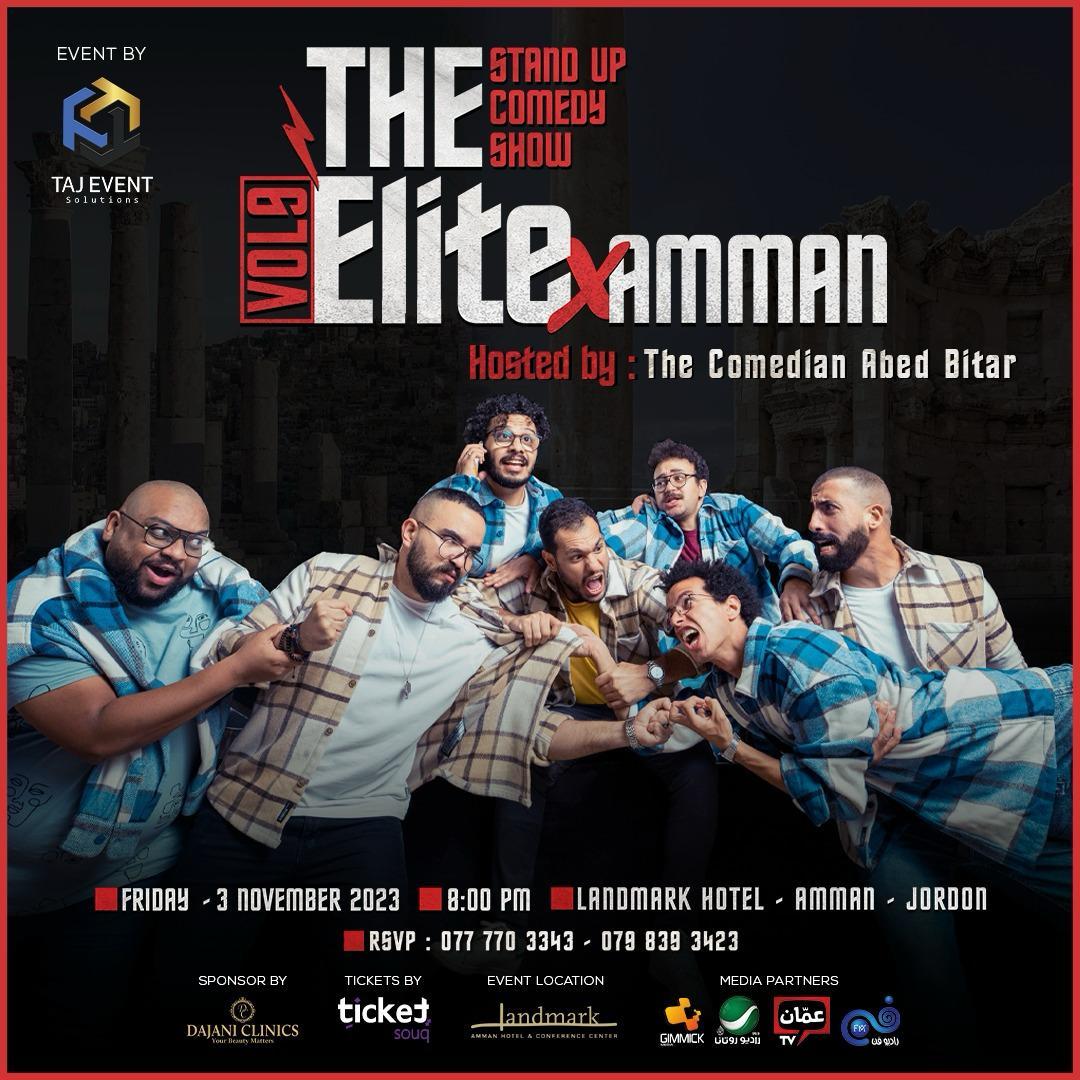 خبرني - تستعد فرقة «ايليت The Elite» المصرية لإحياء كبرى حفلاتها الكوميدية في الأردن الشهر المقبل يوم الجمعة الموافق 3 نوفمبر / تشرين الثاني، بمشاركة وتقديم الكوميديان الاردني ' عبد البيطار ' وبتنظيم من مجموعة TAJ group المتخصصة بتنظيم الحفلات والمناسبات.