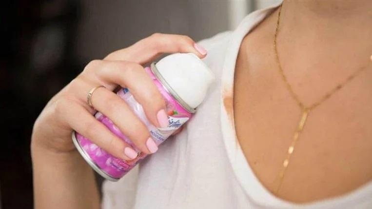 رشي السبراي على جزء صغير من الملابس لإزالة بقع الفاونديشن، وأحمر الشفاه السائل. وتأكدي من عدم حدوث أي اصطباغ أو ضرر. إذا سار الأمر بشكل جيد، قومي برش السبراي مباشرة فوق البقعة.