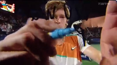 وقّع الروسي على الكاميرا عبارة "لا للحرب من فضلكم" بعد فوزه 3-6، 7-5، 7-6 (7-5) بعد ساعتين و23 دقيقة، في تعبير واضح تجاه غزو بلاده لأوكرانيا.