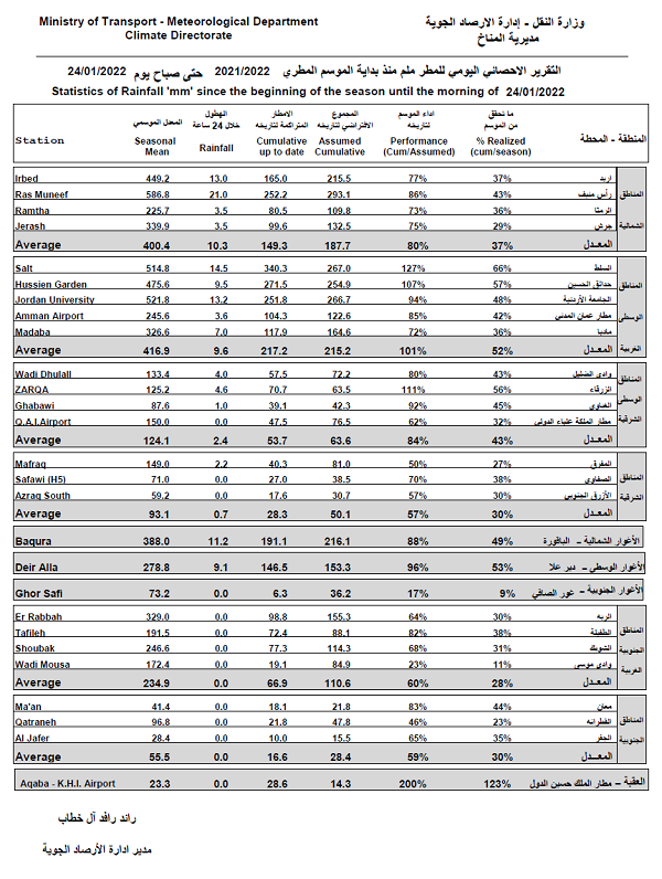 خبرني - أظهر التقرير الإحصائي اليومي للمطر الصادر عن إدارة الأرصاد الجوية اليوم ، أن معدل الهطول خلال 24 ساعة في محاظفات الجنوب سجل 0 ملم.