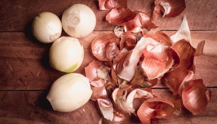 – قومي بتقشير 2-3 بصلة متوسطة الحجم واحتفظي بالقشور في طبق.