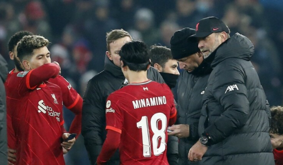 وقلص المهاجم البرتغالي دييغو جوتا الفارق لأصحاب الأرض في الدقيقة 68، ومن ثم اقتنص زميله المهاجم الياباني تاكومي مينامينو هدف التعادل في الوقت القاتل عندما كان اللقاء يلفظ أنفاسه الأخيرة على ملعب "أنفيلد".