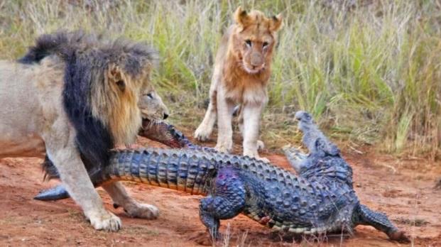كما قال: “شاهدنا أسدا يسير على الطريق الترابي على طول السد، ثم التقى مع عدد قليل من الأسود الأخرى واستمروا جميعا في السير على طول الطريق. جاؤوا إلى حيث كان التمساح يرقد تحت أشعة الشمس، وفجأة هاجم الأسد الذكر التمساح”.