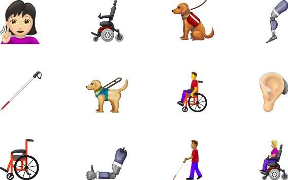 ومن المتوقّع أن يتوفّر للمستخدمين 59 رمزًا تعبيريًا جديدًا من بينها مجموعة ايموجي تصور جوانب مختلفة من تجارب ذوي الإحتياجات الخاصة.