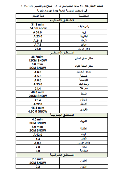 خبرني - حصرت دائرة الارصاد الجوية كميات الامطار خلال الـ24 ساعة الماضية لغاية صباح الخميس