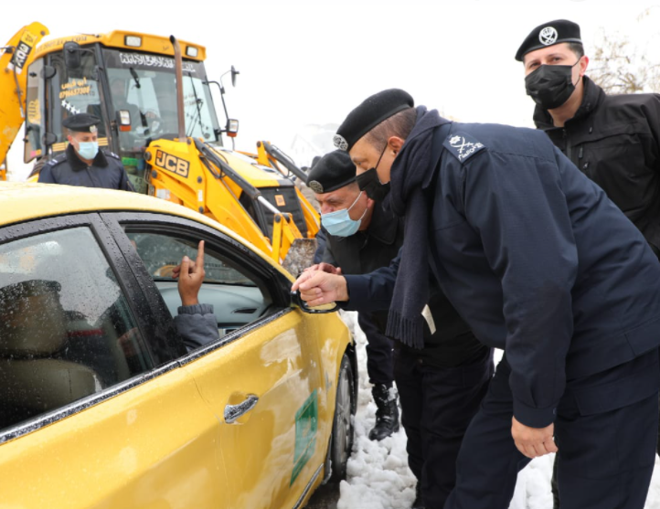 خبرني – خلال جولة تفقدية لمدير الأمن العام اللواء حسين الحواتمة لتفقد الكوادر الأمنية والمواطنين، صدف وجود مواطن في سيارة أجرة يحاول الوصول إلى المستشفى لكن إغلاق الطرق بسبب الثلوج يعيق وصوله.