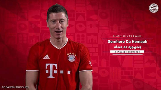 وحاول أفضل لاعب في العالم، البولندي روبرت ليفاندوفسكي، التلفظ بعبارة "جمهوره ده حماه"، وهي عبارة شهيرة لجمهور الأهلي، لكنها خرجت منه بطريقة مضحكة.