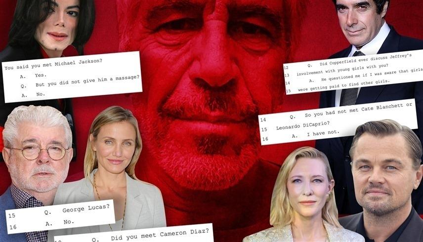 ومن بين هؤلاء النجوم المذكورين في وثائق جيفري، النجم الراحل مايكل جاكسون، والهوليوودي ليوناردو ديكابريو، والنجمة الأسترالية كيت بلانشيت، والساحر الأمريكي ديفيد كوبرفيلد، والمذيع التلفزيوني الأمريكي جيمي كيميل، وعارضة الأزياء البريطانية ناعومي كامبل، والممثلة الأمريكية كاميرون دياز، والنجم الأمريكي بروس ويليس، والممثل الأمريكي كيفين سبيسي، ومقدمة البرامج الحوارية الشهيرة أوبرا وينفري، والممثل والمخرج الأمريكي كيفن كوستنر.