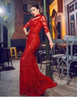 وظهرت نسرين بفستان ضيق وطويل، كما علقت على الصور معايدة الجمهور: