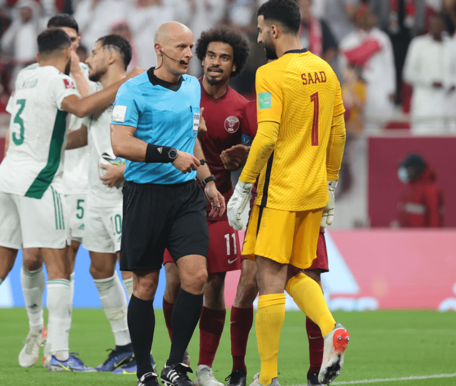 المنتخب الجزائري كان متقدما بهدف دون رد، قبل أن يتعادل المنتخب القطري في الوقت المحتسب بدلا من الضائع، ليتمكن محاربو الصحراء من خطف الانتصار في اللحظات الأخيرة عن طريق ركلة جزاء.