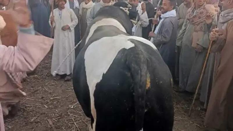 خبرني - أثار أضخم ثور بيع في مصر ضجة واسعة، بسبب وزنه الكبير وثمنه الخرافي الذي بيع به في محافظة أسوان جنوب البلاد.