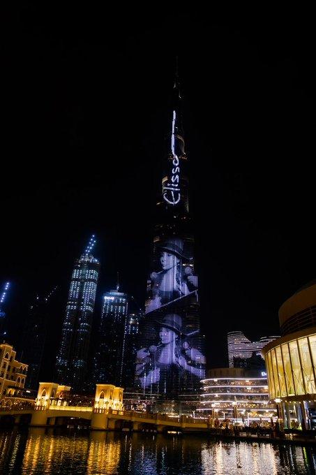 خبرني - نشرت النجمة اللبنانية، إليسا، صورا على حسابها الرسمي في "تويتر" لإضاءة برج خليفة الشاهق في دبي بصورها.
