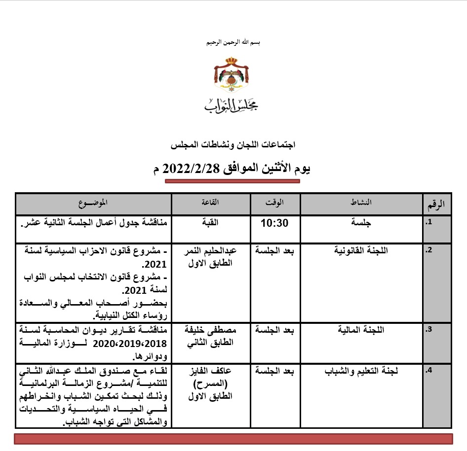 وتلتقي لجنة التعليم والشباب مع صندوق الملك عبدالله الثاني للتنمية/ مشروع الزمالة البرلمانية، وذلك لبحث تمكين الشباب وانخراطهم في الحياة السياسية والتحديات والمشاكل التي تواجه الشباب.