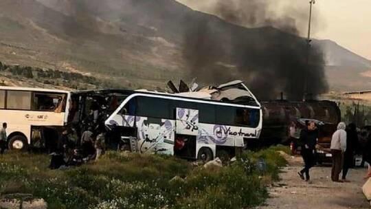 وأفاد مصدر في قيادة شرطة ريف دمشق بمصرع 30 شخصا وإصابة آخرين في حادث سير وقع نتيجة اصطدام صهريج مع باصي نقل ركاب وعدة سيارات على طريق حمص دمشق في منطقة جسر بغداد.