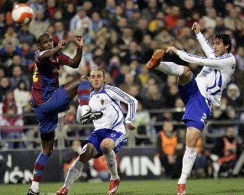 وقاد الفرنسي تييري هنري والبرازيلي رونالدينيو برشلونة الى الفوز على سرقسطة بعد ان تناوبا على تسجيل الهدفين، الاول في الدقيقة 34 والثاني في الدقيقة 83 من ركلة جزاء، فيما كان هدف سرقسطة بتوقيع البرازيلي اوليفييرا (53). والهدف هو السابع لهنري في 19 مباراة له في الدوري الاسباني.