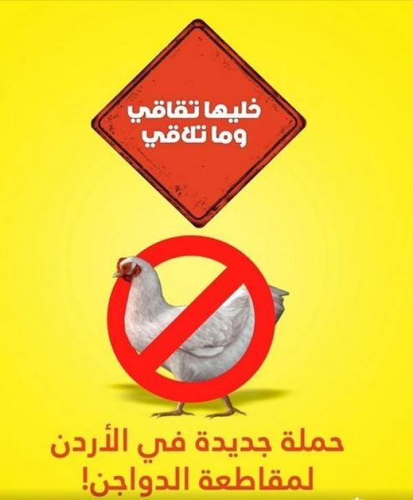 واطلقت الحملة تحت شعار "خليها تقاقي وما تلاقي"، بعد أن وصل سعر الدجاج إلى 3 دنانير للكيلو في مناطق بالعاصمة عمان.
